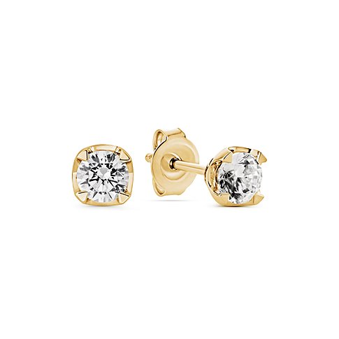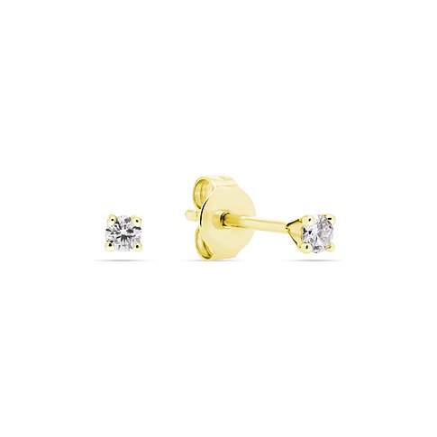 CHRIST oorknopjes van 585 geelgoud met een fonkelende diamant in een klauwzetting, voor- en achteraanzicht.