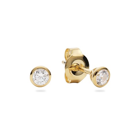 CHRIST oorstekers van 14 karaat geelgoud met diamant.