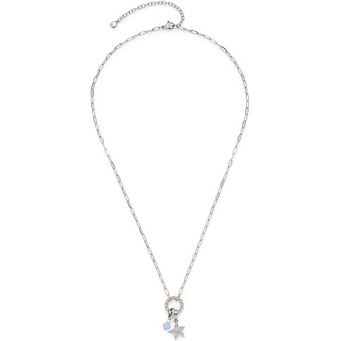 Leonardo roestvrijstalen ketting met ronde hanger en schitterende zirkonia stenen. De hanger toont een kompasster.