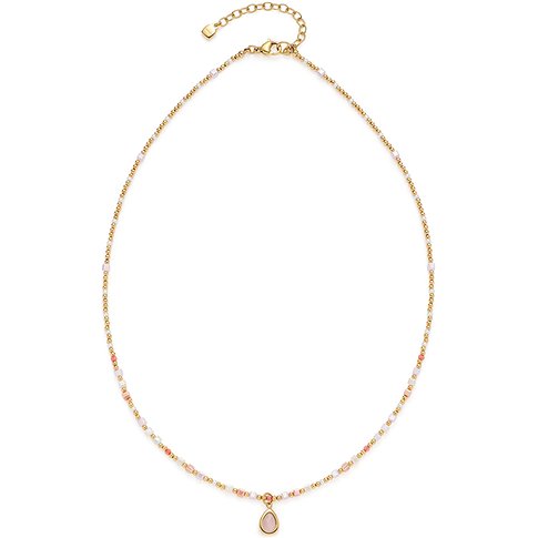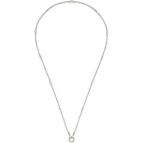 Leonardo roestvrijstalen halsketting met glazen stenen en goudkleurige kralen.