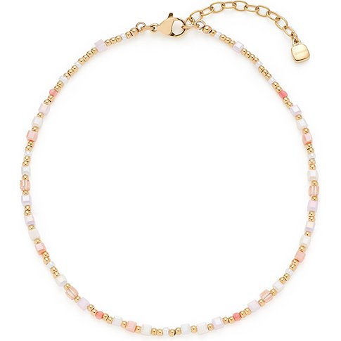 Leonardo roestvrijstalen ketting met twee rijen goudkleurige kralen en glasstenen in verschillende kleuren.
